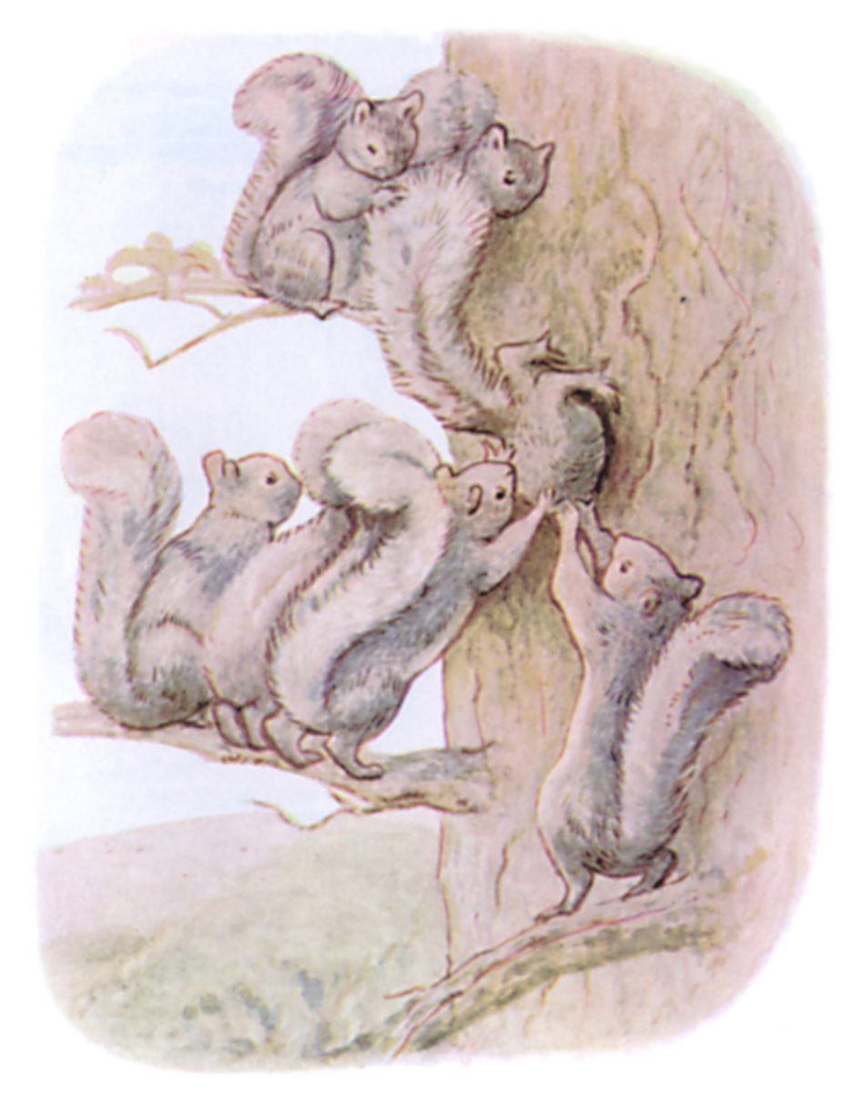 P.S. For those unacquainted with the Beatrix Potter reference, the eponymous gray squirrel in her story gets into trouble with his fellows: “Timmy rolled over and over, and then turned tail and fled towards his nest, followed by a crowd of squirrels shouting — ‘Who’s-been digging-up my-nuts?'”